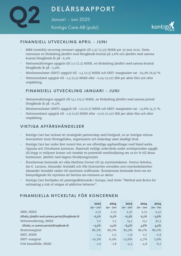 Rapporten återfinns på bolagets hemsida, se https://ir.kontigocare.com/finansiella-rapporter-och-dokument/