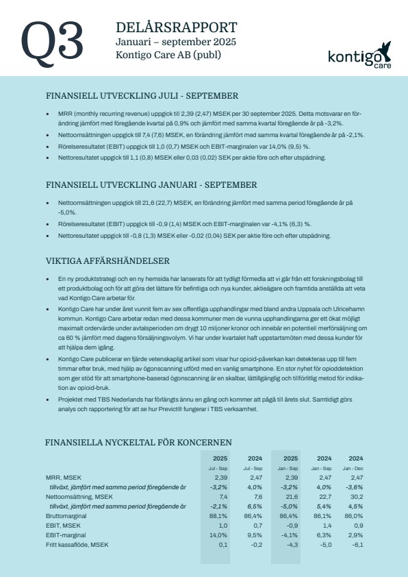 Rapporten återfinns på bolagets hemsida, se https://ir.kontigocare.com/finansiella-rapporter-och-dokument/